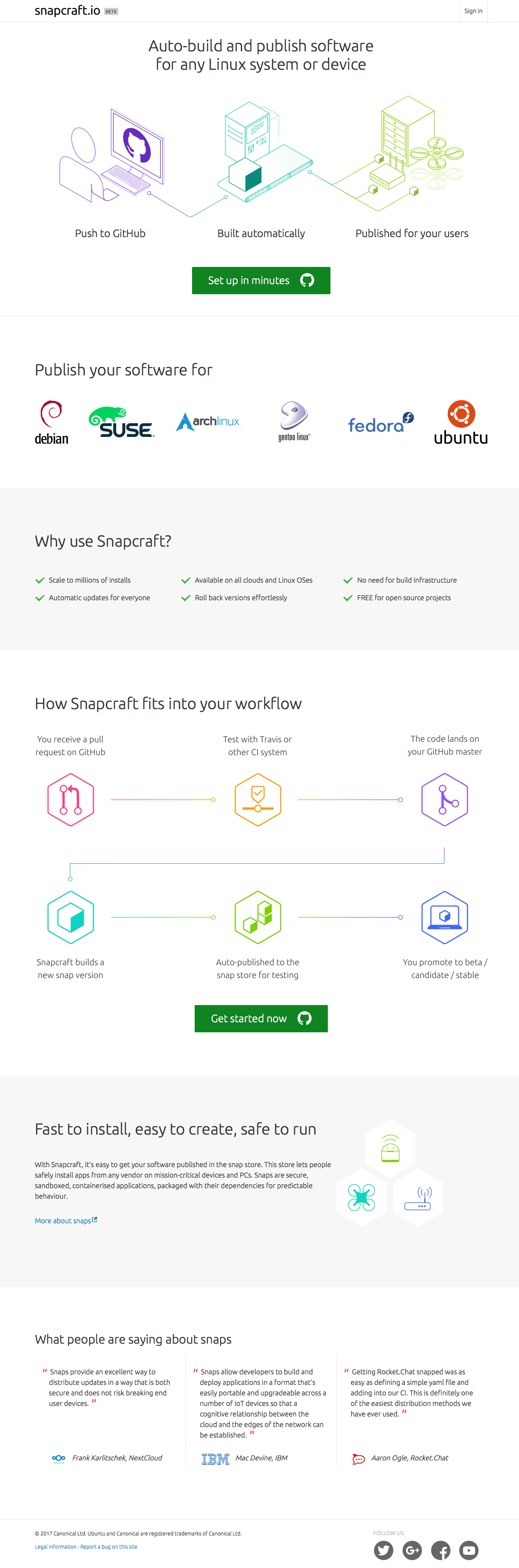 In January, I was presented with a design challenge. Many open-source software developers use GitHub. Let’s make it as easy as possible for them to build and release their code automatically, as a snap software package for Ubuntu and other Linux systems. The result is now available to the world: build.snapcraft.io.